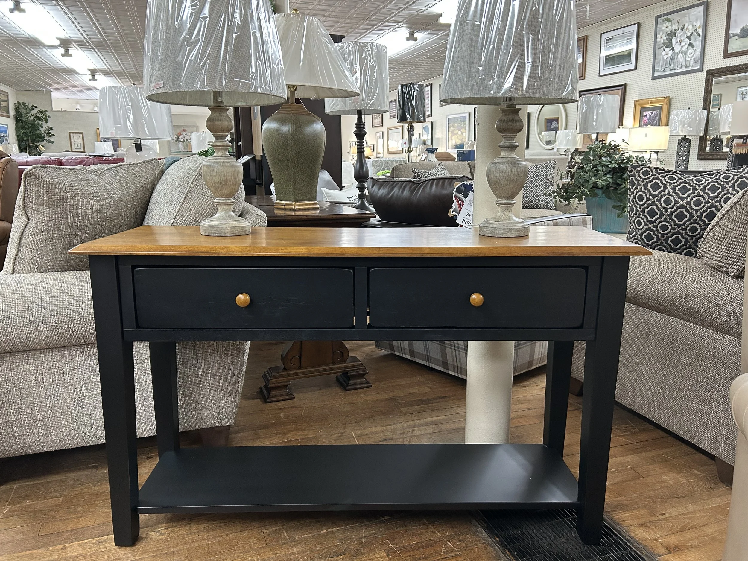 Pine sofa table / entertainment stand (W48” x D17” x H32”)