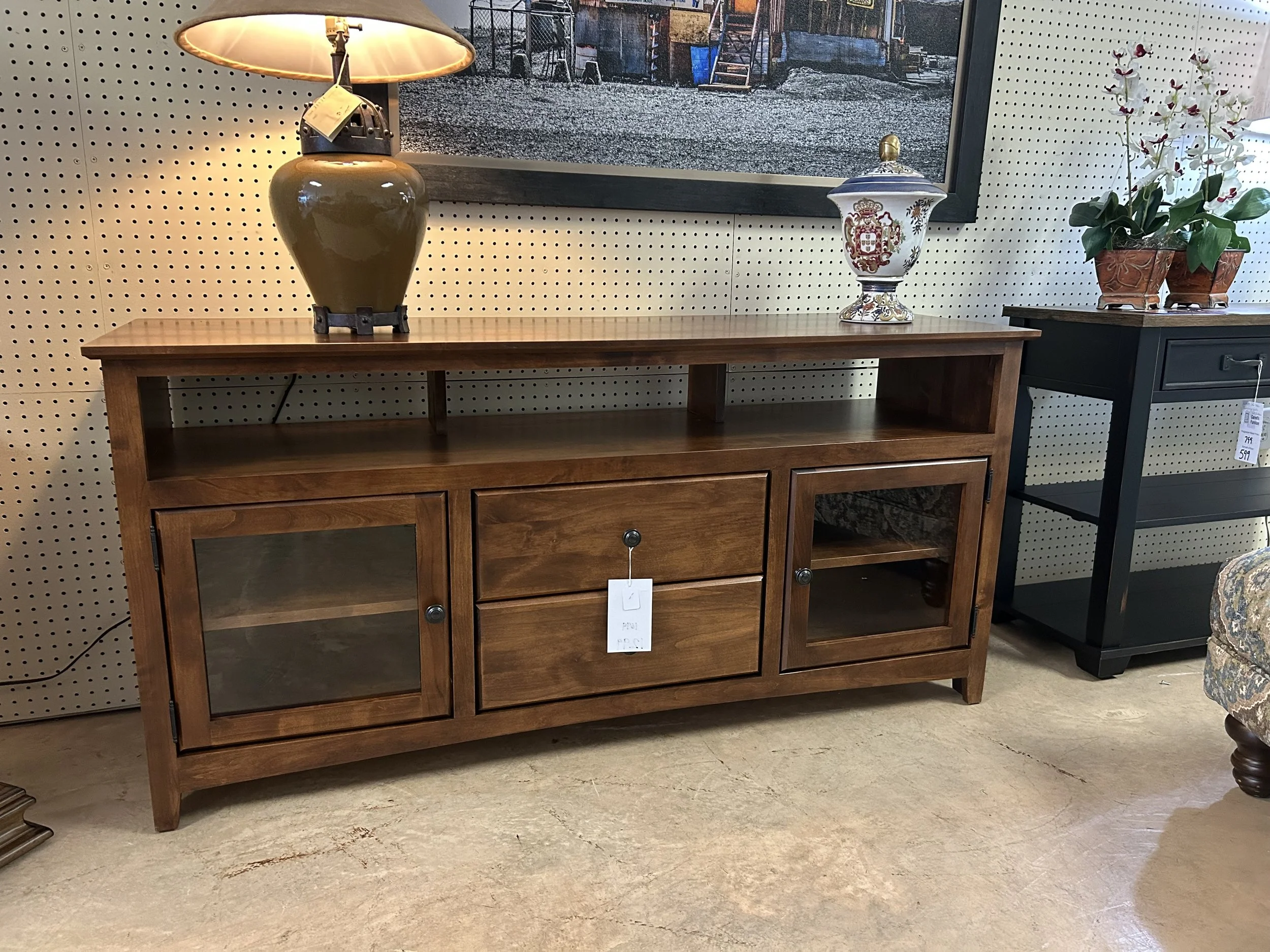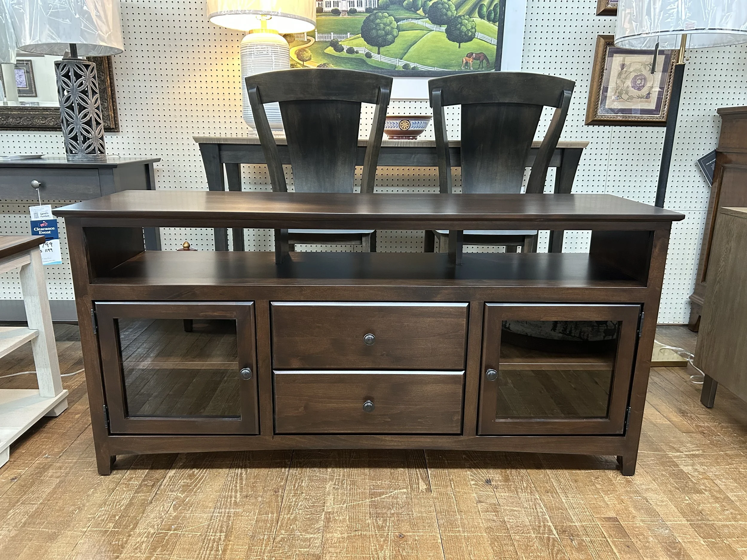 Amish-made Amish Essentials 60” entertainment console in solid Maple with Asbury finish