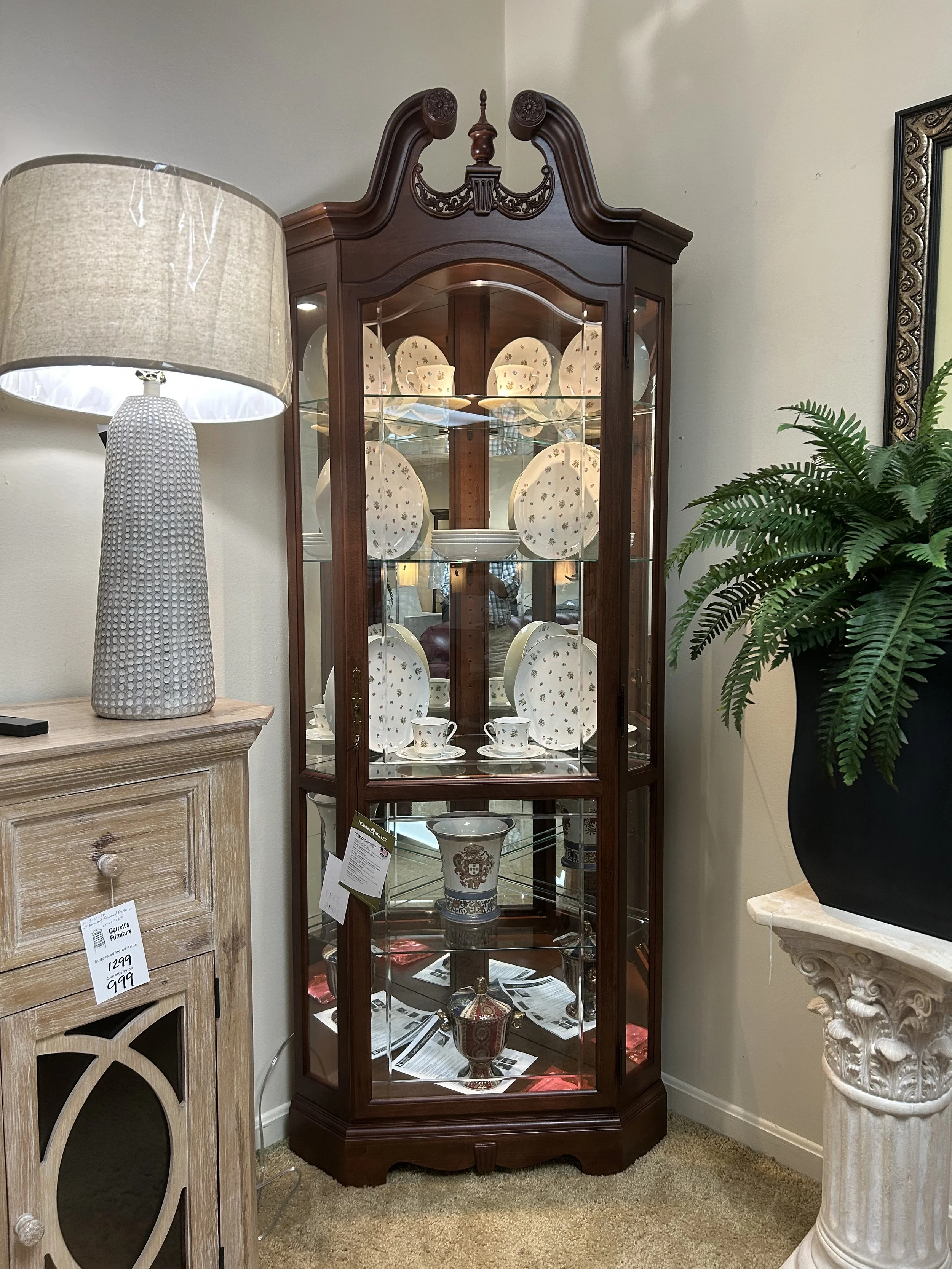 Howard Miller - Berkshire corner curio in Windsor Cherry finish (H: 85“ x W: 34“ x D: 21“)