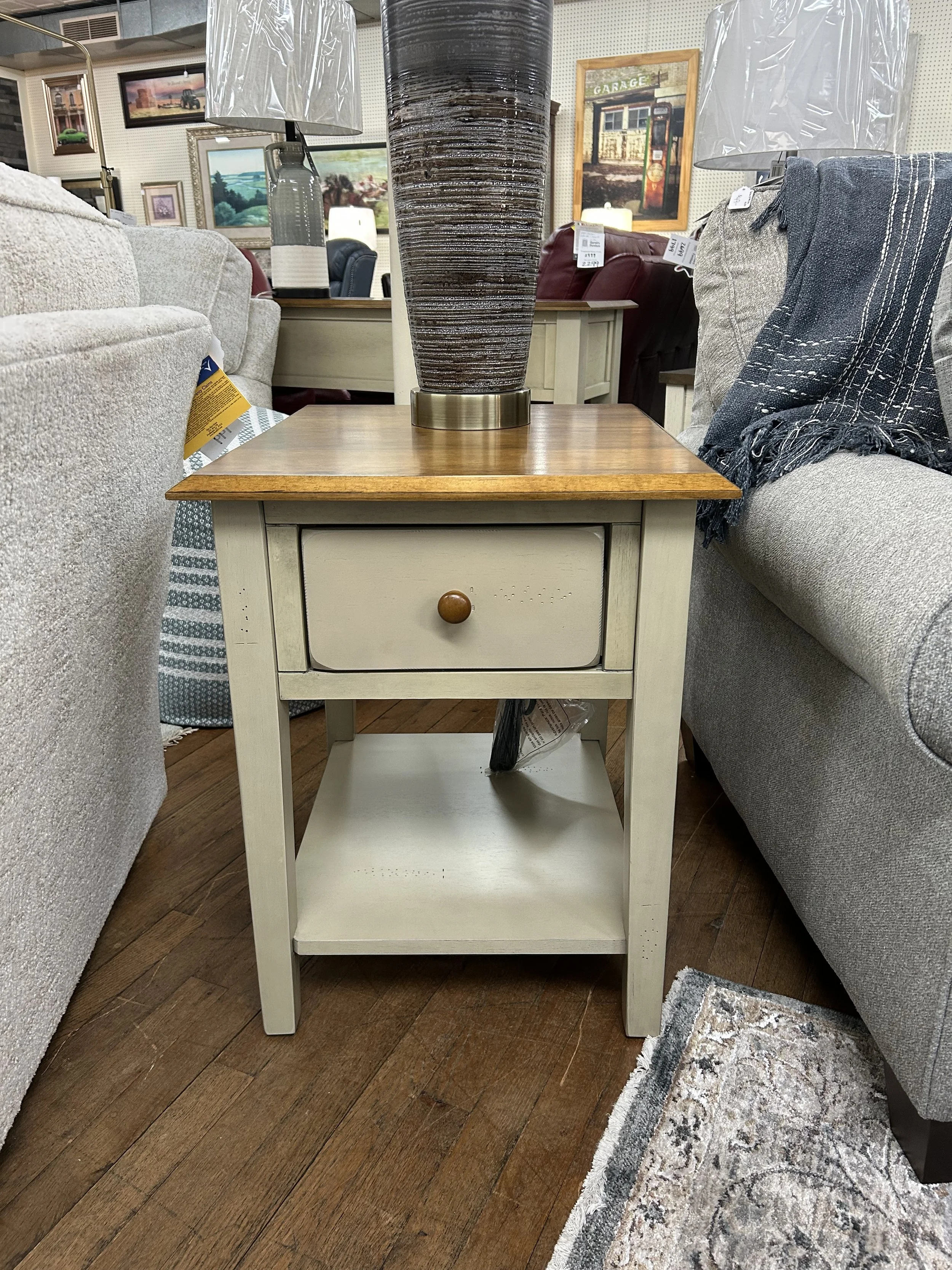 ”Littoral” 27” x 21” end table in two-tone Rosemary & Washed Pecan on solid Birch by Canadel