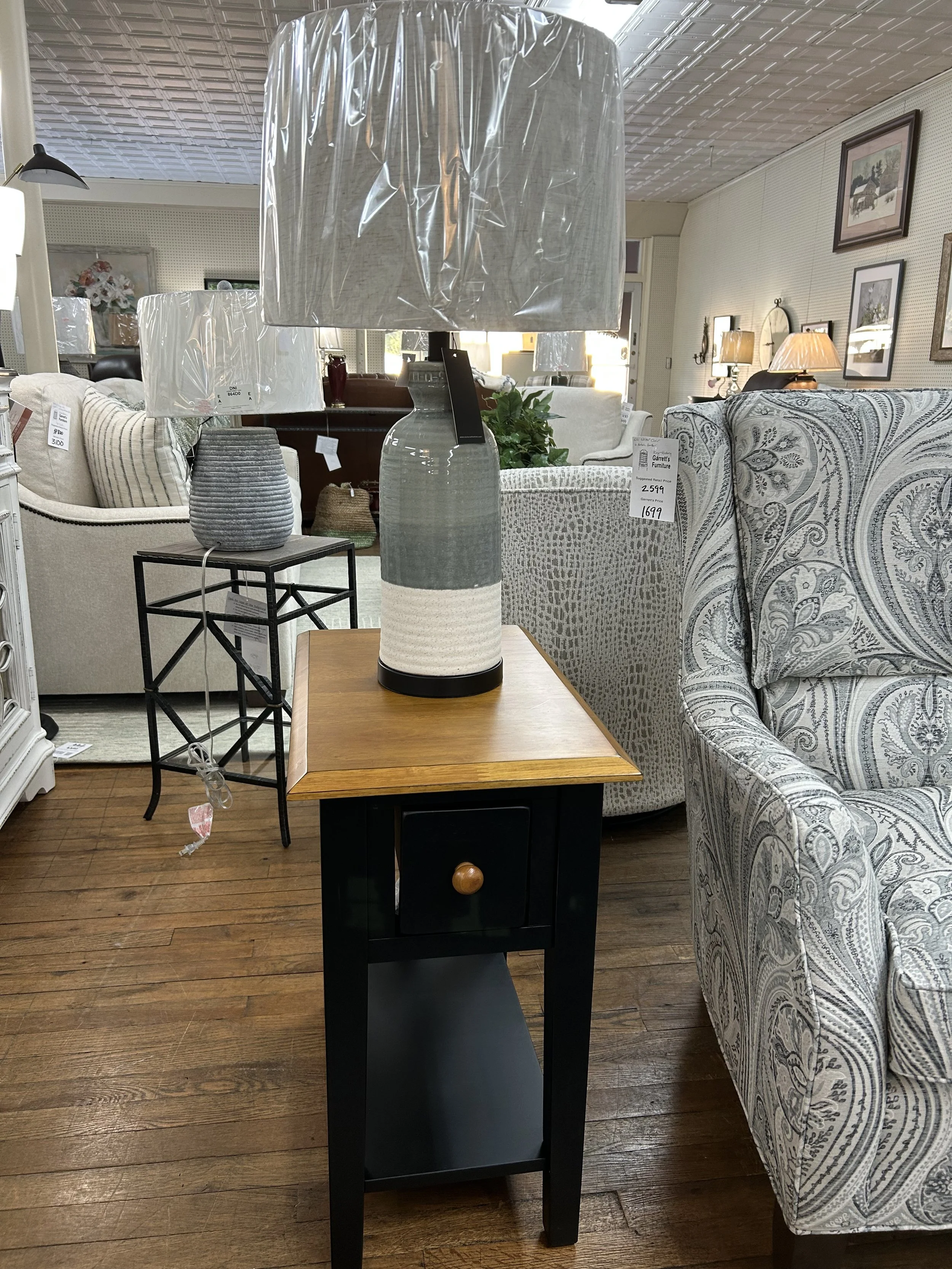 ‘Marco’ 24” end table by Mavin in two-tone: Belair and Mocha on Wormy Maple