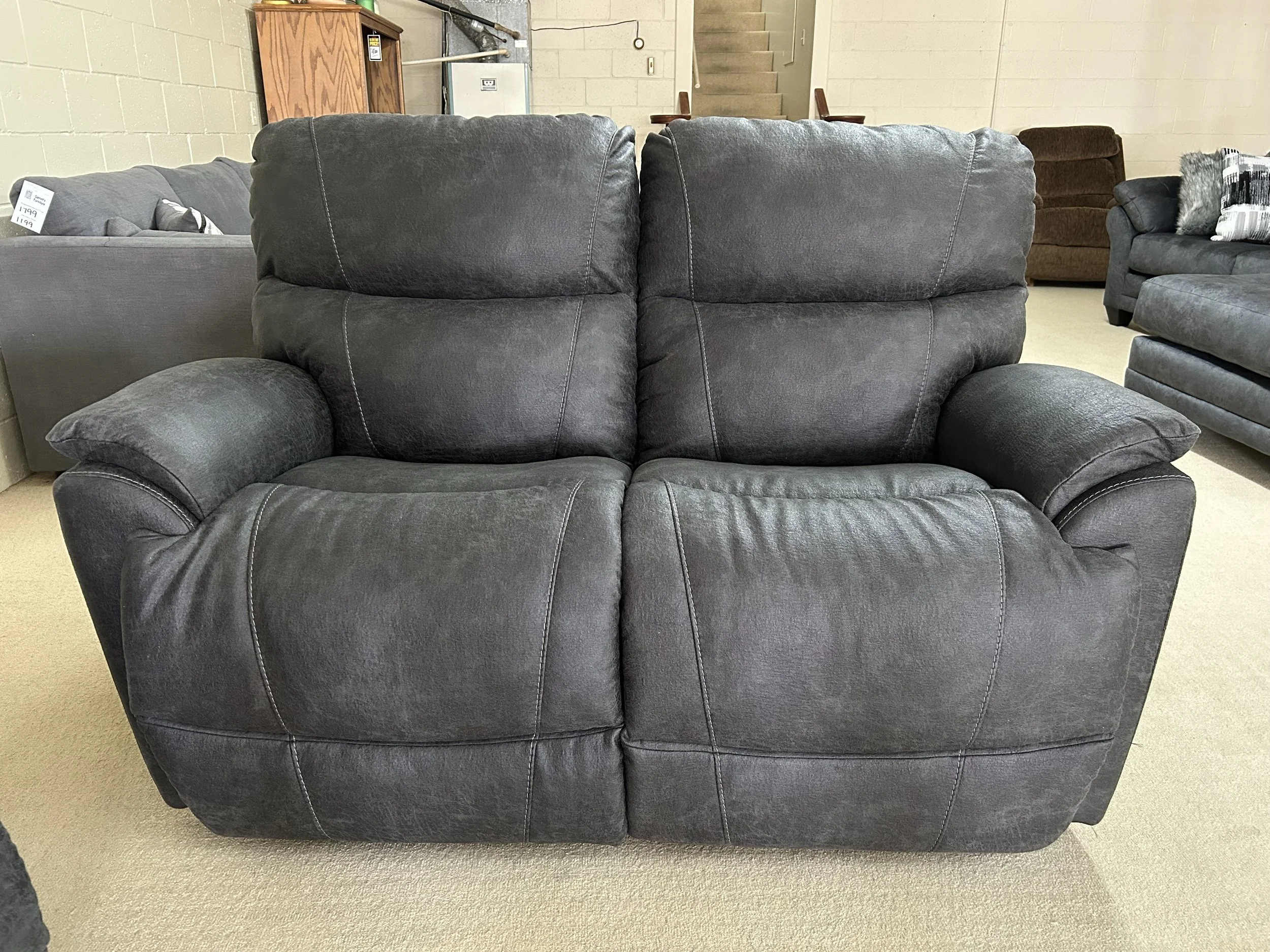 LaZBoy ‘Brooks’ reclining loveseat in gray fabric View fullsize